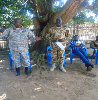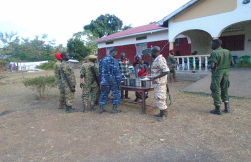 Organized forces of different faction sharing dinner together Eg IOs, SSPDF, Police, Fire brigade, Wild life and Prison Services were brought together for workshop and they are sharing food and sign of reconciliation among them.